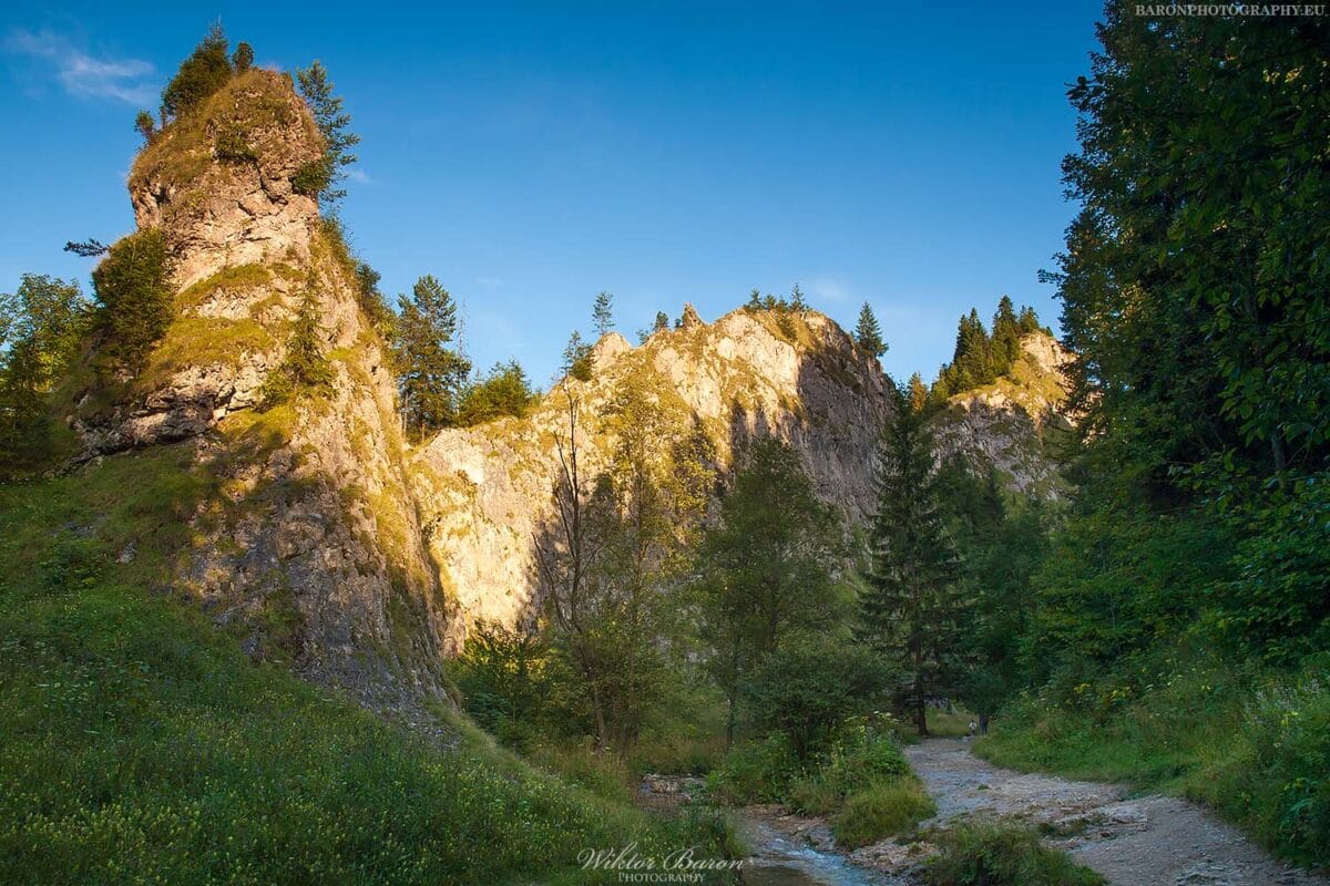 Dolina Białej Wody to jedna z najbardziej malowniczych dolin Pienin, idealna na spokojną, relaksującą wędrówkę. Trasa biegnie przez Rezerwat Przyrody Biała Woda, wzdłuż krystalicznie czystego potoku Biała Woda, otoczonego majestatycznymi, wapiennymi skałami i zielonymi łąkami. Dolina zachwyca wyjątkowym spokojem i pięknem przyrody – można tu podziwiać malownicze formacje skalne, takie jak Czarcie Skały czy Smolegowa Skała.