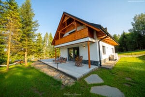 Nasz ogród to pół hektara ogrodzone solidnymi panelami. Dookoła nie ma innych domów tylko las i połoniny. Ta przestrzeń zapewnia całkowitą ciszę, spokój i prywatność. W ogrodzie znajdują się drewniany domek na palach do zabawy dla dzieci. Pod domkiem jest piaskownica, gdzie można się bawić nawet kiedy pada deszcz. Latem wystawiamy do ogrodu mały basen dla dzieci. Jest zadaszona przestrzeń grillowa z piecem do pizzy i tradycyjną kuchnią z fajerkami. Jest altana w pienińskim stylu, idealna do wspólnego spędzania czasu. W ogrodzie jest opalana drewnem bania. Jest też miejsce na duże ognisko z siedziskami dookoła. Nie zabrakło też kilku dwuosobowych hamaków rozwieszonych pomiędzy drzewami. Dodatkowo zbudowaliśmy w ogrodzie bulodrom do gry w pétanque. W naszym ogrodzie Wasze zwierzęta poczują się jak na wakacjach zaplanowanych również dla nich bo wybiegają się tak, że nie będzie im już potrzebny spacer po górach.